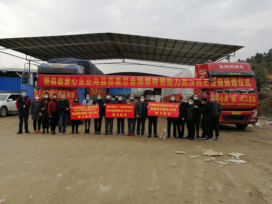 疫情暴發(fā)后,湖北武漢等地區(qū)相關(guān)物資全面告急,縣慈善總會(huì)多方籌措,盡一切所能,積極發(fā)動(dòng)愛心企業(yè)募集救災(zāi)物資。2020年2月25日,第一批由順昌和順通農(nóng)業(yè)有限公司捐贈(zèng)的10噸優(yōu)質(zhì)蘆柑和榕宏農(nóng)業(yè)科技有限公司捐贈(zèng)的4噸流星包菜從從洋墩鄉(xiāng)的順昌柑桔品牌監(jiān)管倉出發(fā),奔赴武漢,定向捐贈(zèng)給湖北省烹飪酒店行業(yè)協(xié)會(huì),用于定點(diǎn)醫(yī)院醫(yī)護(hù)人員和患者的供保餐盒制作原材料供給。
