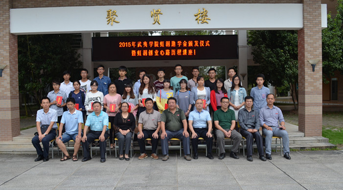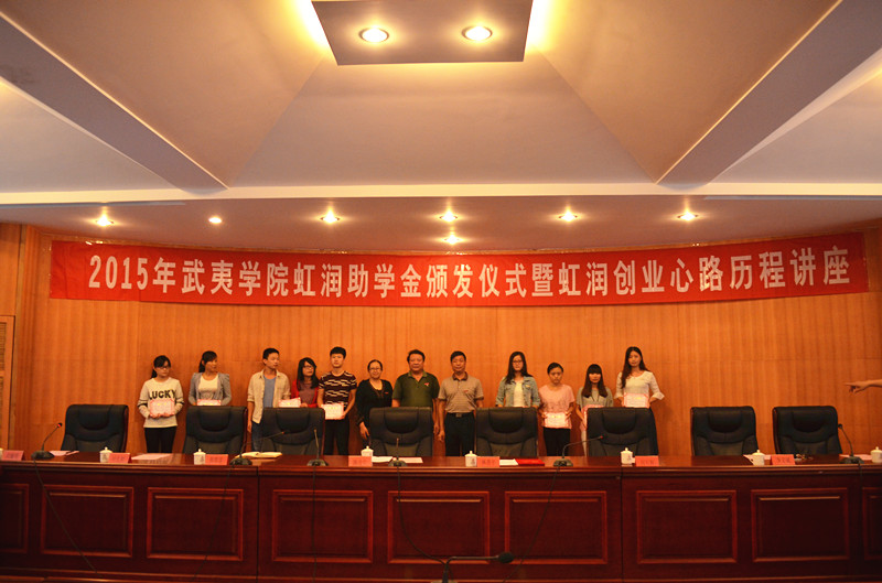 姚進生、林善平等與會領(lǐng)導(dǎo)為獲得虹潤助學金的同學頒發(fā)了證書。林善平用自己的創(chuàng)業(yè)歷程告訴同學們要尊重自我,在暫時的逆境中砥礪品格,磨練意志,用自己的努力不斷增長知識和才干,在以后的人生歷程中選擇更輝煌的道路。