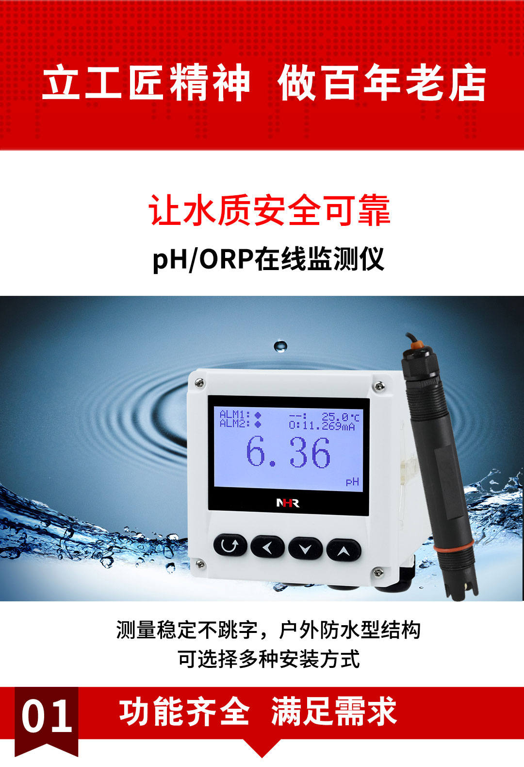 虹潤公司是專業(yè)生產(chǎn)水質(zhì)分析儀的國家專精特新“小巨人”企業(yè)。生產(chǎn)的PH/ORP在線監(jiān)測儀,具有多元化安裝方式,IP65防護(hù)等級,多種類型輸出,測量精準(zhǔn)穩(wěn)定不跳字,變送輸出精準(zhǔn)等特點(diǎn)。產(chǎn)品獲得一種適應(yīng)性強(qiáng)PH控制儀、智能化控制器等2項(xiàng)國家發(fā)明專利;主持起草現(xiàn)場設(shè)備集成等5項(xiàng)智能制造國家標(biāo)準(zhǔn),以及現(xiàn)場設(shè)備工具(FDT)接口規(guī)范、工業(yè)過程控制系統(tǒng)用模擬輸入兩位或多位輸出儀表、過程分析技術(shù)系統(tǒng)等3項(xiàng)國家標(biāo)準(zhǔn);參與國際5G標(biāo)準(zhǔn)制定,取得PH值測量儀表等2項(xiàng)相關(guān)軟件著作權(quán)。產(chǎn)品廣泛應(yīng)用于實(shí)驗(yàn)室、水處理、環(huán)境監(jiān)測、食品、制藥、農(nóng)業(yè)等諸多領(lǐng)域。