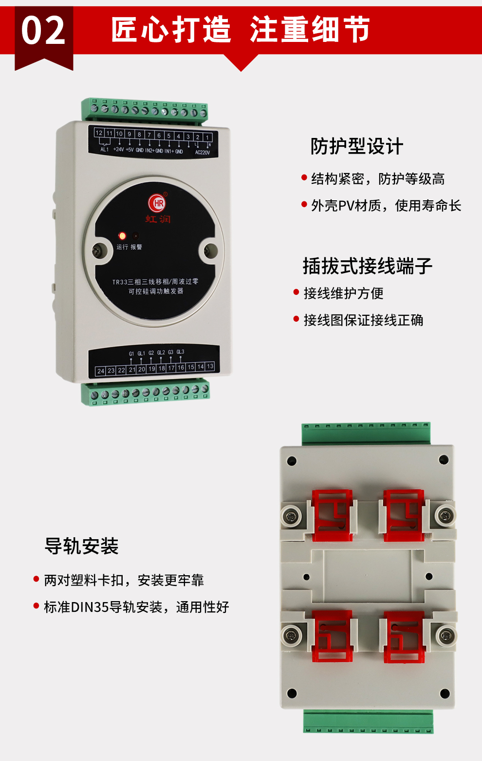 虹潤(rùn)公司是專業(yè)生產(chǎn)移相觸發(fā)器的國(guó)家專精特新“小巨人”企業(yè),生產(chǎn)的移相觸發(fā)器,具有采用光電隔離設(shè)計(jì),自動(dòng)同步功能,過流保護(hù)技術(shù),電源缺相檢測(cè),信號(hào)超限報(bào)警等特點(diǎn)。產(chǎn)品獲得巡回檢測(cè)顯示方法及裝置、儀表殼體等2項(xiàng)國(guó)家發(fā)明專利,主持起草工業(yè)過程控制系統(tǒng)用模擬輸入兩位或多位輸出儀表、物聯(lián)網(wǎng)智能溫度儀表通用技術(shù)條件等2項(xiàng)國(guó)家標(biāo)準(zhǔn)以及通信系統(tǒng)多通道數(shù)據(jù)采集控制終端規(guī)范軍用標(biāo)準(zhǔn),參與國(guó)際5G標(biāo)準(zhǔn)制定,取得外置移相觸發(fā)器等2項(xiàng)相關(guān)軟件著作權(quán)。產(chǎn)品廣泛應(yīng)用于工業(yè)溫控、電極控制、航天軍工、電爐溫控、食品醫(yī)藥等諸多領(lǐng)域。