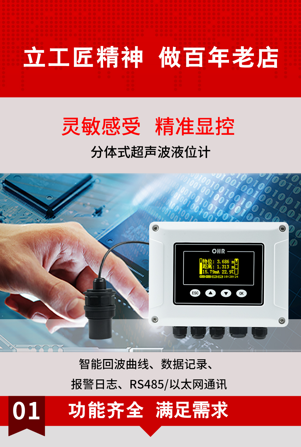 虹潤(rùn)公司是專業(yè)生產(chǎn)超聲波液位計(jì)的國(guó)家專精特新“小巨人”企業(yè)。生產(chǎn)的分體式超聲波液位計(jì),具有數(shù)據(jù)記錄與轉(zhuǎn)存,智能回波曲線顯示,RS485/以太網(wǎng)通訊,報(bào)警繼電器輸出,報(bào)警日志等特點(diǎn)。產(chǎn)品獲得無紙記錄儀以及一種信號(hào)發(fā)生裝置等2項(xiàng)國(guó)家發(fā)明專利,主持起草物聯(lián)網(wǎng)智能記錄儀表以及工業(yè)過程控制系統(tǒng)用模擬輸入兩位或多位輸出儀表等2項(xiàng)國(guó)家標(biāo)準(zhǔn),以及通信系統(tǒng)多通道數(shù)據(jù)采集控制終端規(guī)范軍用標(biāo)準(zhǔn),參與國(guó)際5G標(biāo)準(zhǔn)制定,取得超聲波液位計(jì)等2項(xiàng)相關(guān)軟件著作權(quán)。產(chǎn)品廣泛石化、電力、食品、污水處理、市政設(shè)施等諸多領(lǐng)域。