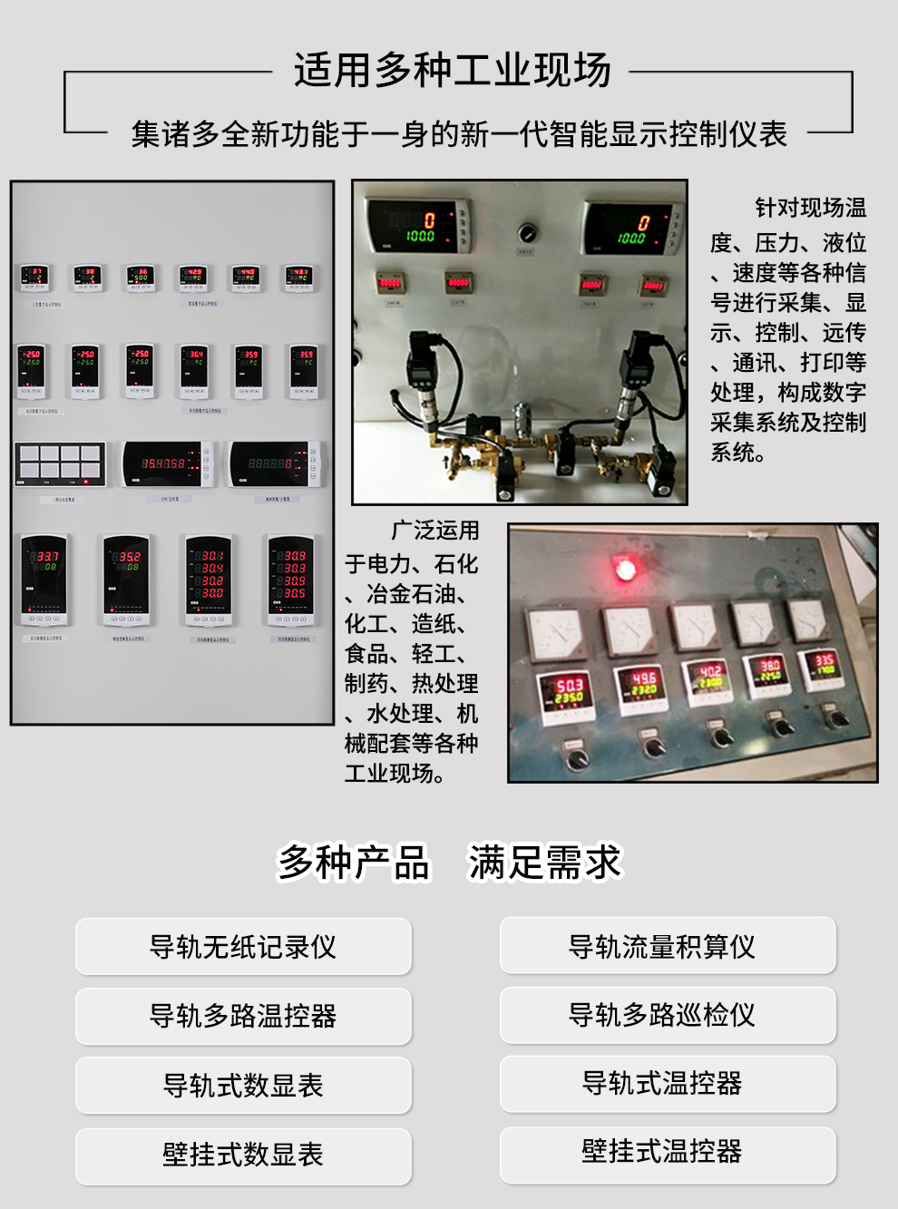 虹潤公司是專業(yè)生產(chǎn)多路溫度巡檢儀的國家專精特新“小巨人”企業(yè)。生產(chǎn)的導(dǎo)軌多路巡檢儀,具有八回路巡檢采集,全切換信號(hào)輸入,高抗電磁干擾,全隔離設(shè)計(jì),分別報(bào)警/分別變送輸出等特點(diǎn)。產(chǎn)品獲得巡回檢測顯示方法及裝置以及工業(yè)模塊的導(dǎo)軌式安裝結(jié)構(gòu)等2項(xiàng)國家發(fā)明專利,主持起草工業(yè)過程控制系統(tǒng)用模擬輸入兩位或多位輸出儀表、物聯(lián)網(wǎng)智能溫度儀表通用技術(shù)條件等2項(xiàng)國家標(biāo)準(zhǔn),以及通信系統(tǒng)多通道數(shù)據(jù)采集控制終端規(guī)范軍用標(biāo)準(zhǔn),參與國際5G標(biāo)準(zhǔn)制定,取得巡回檢測控制儀等3項(xiàng)相關(guān)軟件著作權(quán)。產(chǎn)品廣泛應(yīng)用于石化、冶金、電力、食品、制藥、水處理、實(shí)驗(yàn)室等諸多領(lǐng)域。