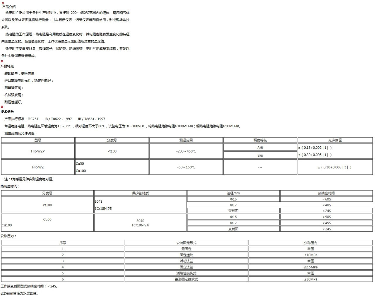 熱電阻(thermal resistor)是中低溫區(qū)最常用的一種溫度檢測器。熱電阻測溫是基于金屬導體的電阻值隨溫度的增加而增加這一特性來進行溫度測量的。它的主要特點是測量精度高,性能穩(wěn)定。其中鉑熱電阻的測量精確度是最高的,它不僅廣泛應用于工業(yè)測溫,而且被制成標準的基準儀。
