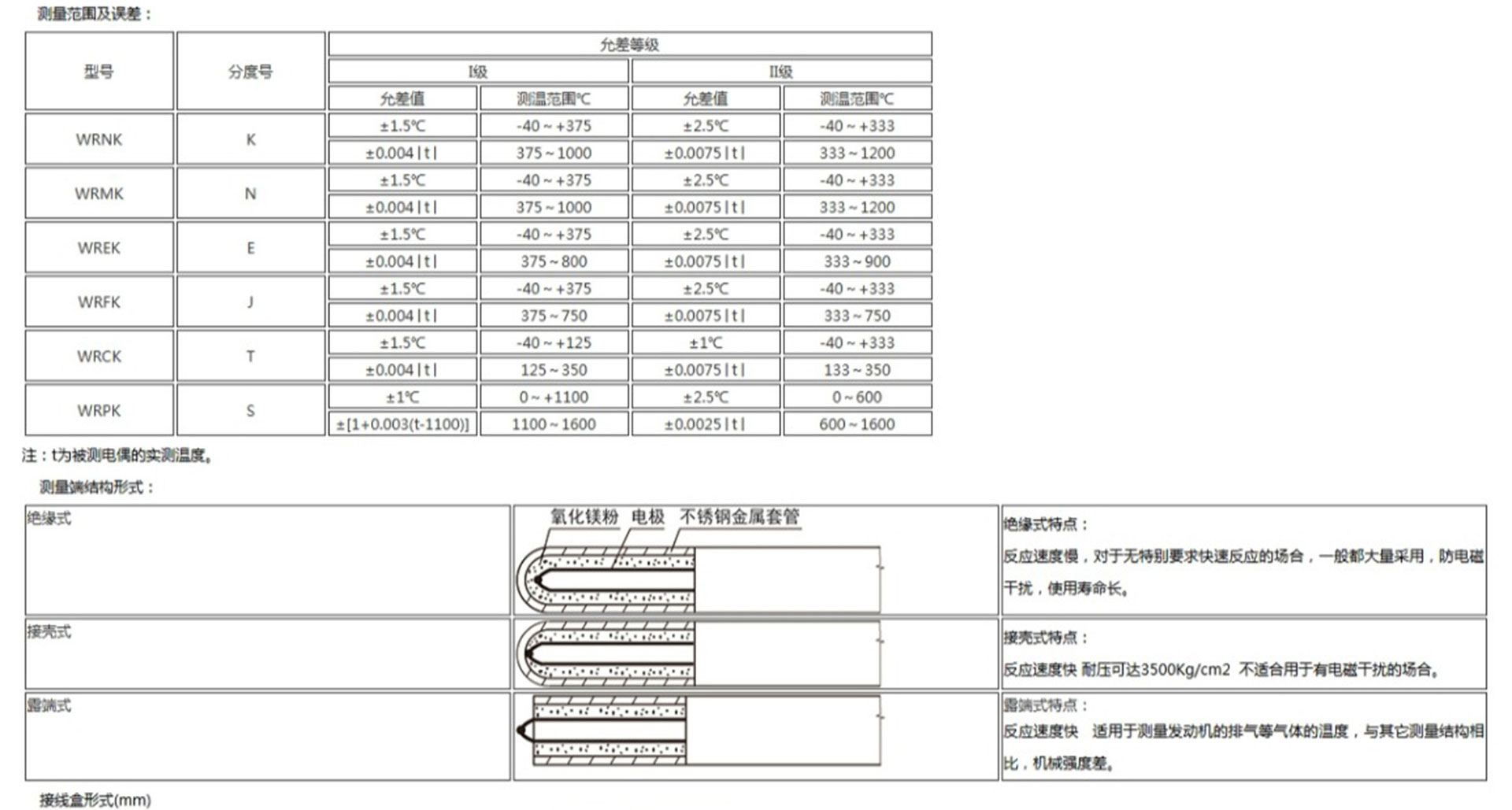 鎧裝熱電偶作為溫度測(cè)量傳感器,通常與溫度變送器、調(diào)節(jié)器及顯示儀表等配套使用,組成過程控制系統(tǒng),用以直接測(cè)量或控制各種生產(chǎn)過程中0-1800℃范圍內(nèi)的流體、蒸汽和氣體介質(zhì)以及固體表面等溫度。鎧狀熱電偶具有能彎曲、耐高壓、熱響應(yīng)時(shí)間快和堅(jiān)固耐用等許多優(yōu)點(diǎn)。