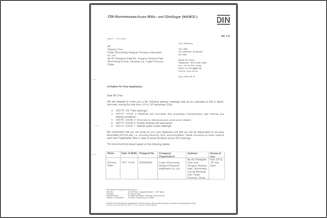 德國標(biāo)準(zhǔn)化學(xué)會邀請虹潤公司參加國際標(biāo)準(zhǔn)制定的邀請函